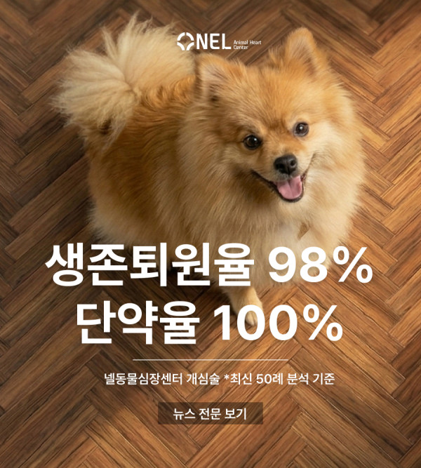 국내 최초 개심술 100례를 달성한 넬동물의료센터는 최근 반려견 개심술 50례를 분석한 결과 생존퇴원율 98%를 기록했다고 밝혔다. 생존 환견 모두 수술 후 심장약 복용을 중단했다.